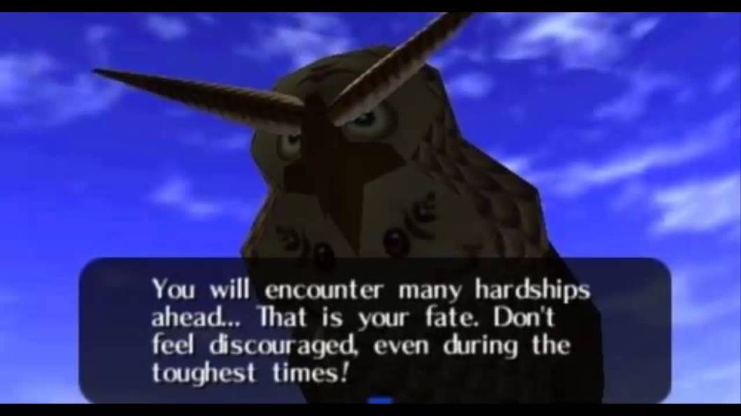 “You will encounter many hardships ahead… That is your fate. Don’t feel discouraged, even during the toughest times!” — Owl, The Legend of Zelda: Ocarina of Time