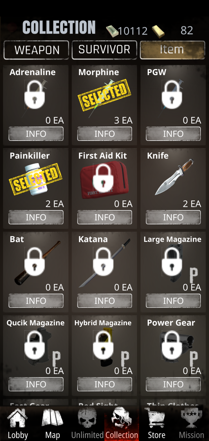 You can also get items by purchasing item boxes in the store. We recommend doing this as soon as possible because the game only gets harder the farther you go. With the help of the items you will be able to survive the zombie apocalypse, and escape the death hospital as soon as possible.