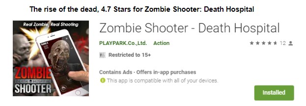 Let’s put some numbers here if you aren’t too convinced to start playing yet. Zombie Shooter: Death Hospital now on the Google Play Store. It has an amazing 4.7 star rating, from 12 different reviews. Looking at the installs, it seems more than 100 people have started playing the game, who knows, soon it may even be in the thousands. You don’t want to be the only person not playing this game.